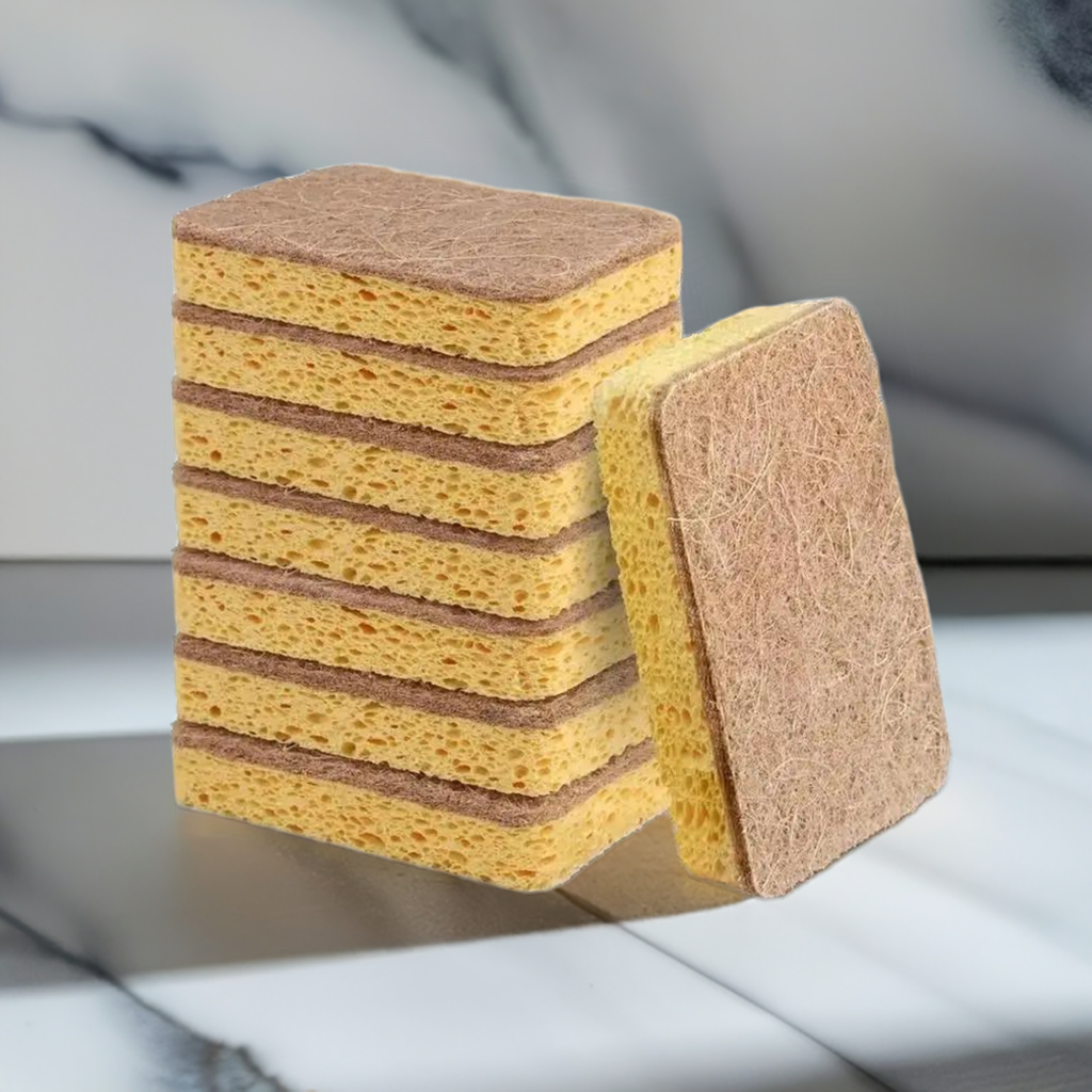 Unsere innovativen Schwämme bestehen aus 100% biologisch abbaubaren Materialien: Der Scheuerbezug aus reiner Bio-Baumwolle, der Schwammkern aus pflanzlichen, kompostierbaren Rohstoffen. Stark gegen Schmutz, sanft zu Deinen Oberflächen – und gut für die Umwelt.